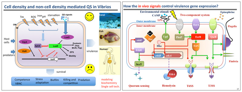 13. Yang Z, Zhou XH, Ma Y, Zhou M, Waldor MK, Zhang YX, Wang QY*. Serine/threonine kinase PpkA coordinates the interplay between T6SS2 activation and quorum sensing in the marine pathogen Vibrio alginolyticus. Environ Microbiol, 2018, 20:903-919.