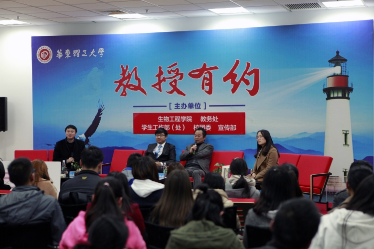 3月14日晚,由校教务处主办、生工学院承办的“教授有约”活动在奉贤校区图文信息中心603室举办,邀请全国优秀科技工作者、国家重点学科——生物化工学科带头人、鲁华生物技术研究所所长魏东芝教授,国家教学名师培育团队成员王玮副教授,以及 少妇白洁