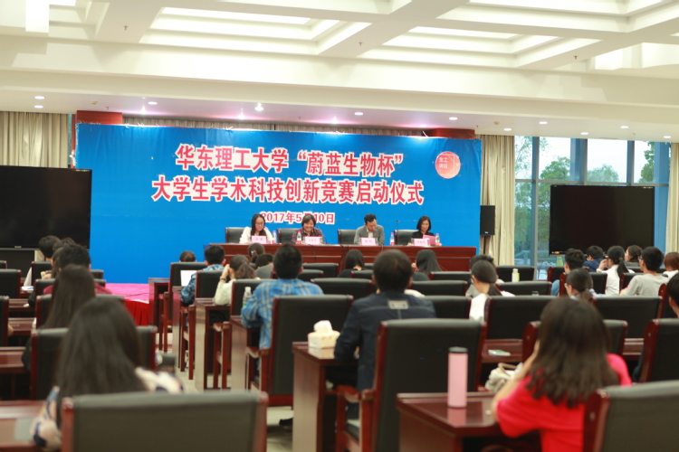 举办了首届“蔚蓝生物杯”大学生学术科技创新竞赛启动仪式。青岛蔚蓝生物股份有限公司总裁陈刚、人力资源部总经理郎春燕, 少妇白洁
