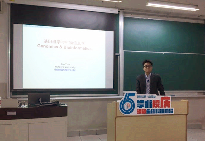 研究生进行了“基因组学与生物信息学”的课程教学,为同学们展示了基因组学研究中生物信息学技术的应用,同时介绍了RNA加工中最新研究热点,课程极大地开阔了同学们的视野,课内田斌教授与同学们就学术问题也展开了热烈的讨论,同学们纷纷表示受益颇多。期间,田斌教授在吴海珍教授、范立强副教授的陪同下参观了奉贤新校区,见证着母校的蓬勃发展,田斌教授谈到每次回母校都为母校的发展而自豪,表示希望能通过努力搭建华理与罗格斯大学学生联合培养及学术交流的平台,为母校的发展添砖加瓦,也祝愿母校越来越好。