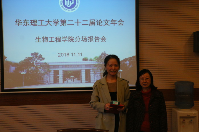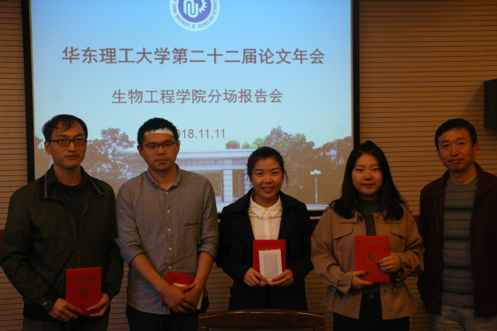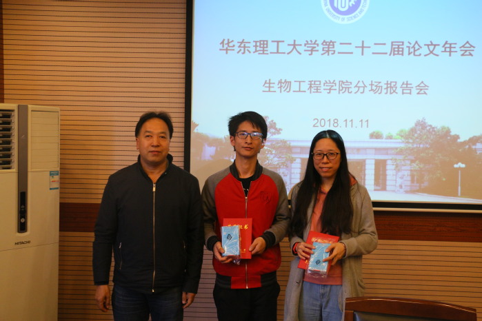 在本次答辩中,各位研究生同学从各自的研究领域出发,一一上台阐述了他们论文的研究成果,内容涉及鸟氨酸生产菌改造、外泌体的定量检测、生物反应器改造等方面,充分展示了生工研究生严谨的科研态度与扎实的专业知识,赢得了现场观众的阵阵掌声。在各位同学精彩的答辩后,评委老师们对同学们进行提问,并对其研究成果在应用分析等方面提出了意见和建议。最终陈守文同学获得一等奖,何芳同学获得二等奖,高琪和刘伟同学获得三等奖,张斌、侯伟亮、陈雨檬和刘梦娟同学获得优秀奖。评审老师们对获奖同学表示祝贺并颁发荣誉证书和奖品。