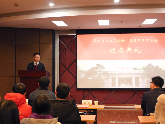 欣和奖学奖教金、卫康奖学奖教金颁奖典礼在实验十八楼315隆重举行。山东欣和食品工业有限公司销售总监李知明先生、华东区域经理高古风先生、销售经理曹通先生、李蓉女士和李萱女士出席颁奖典礼,学院党委书记陆兵,副院长赵黎明、学工委主任吴蓉及师生代表60多人出席仪式。