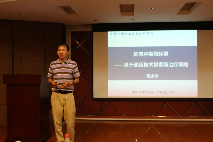 生物反应器工程国家重点实验室邀请,中国科学院上海药物所研究组长黄永焯研究员来校访问,并开展了“靶向肿瘤微环境的递药及治疗策略”的主题讲座。此次报告会由赵黎明教授主持,生物反应器工程国家重点实验室主任张立新教授应邀出席了本次报告交流会。