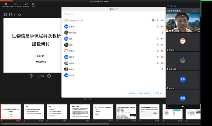 为了进一步落实学校和学院有关加强教研组建设的有关规定,加强学院本科教学和科研工作的互动,推进生物工程/生物技术一流本科专业和一流本科课程建设,培养拔尖和创新型的本科人才,生物信息学与生物系统教研组于2020年5月28日在教学副院长王启要的组织下在线上召开了第一次全体教师会议,共同讨论生物信息学与生物系统课程群的课程建设目标、建设思路和教改路径。会议邀请到张惠展、吴海珍和花强等教授参会。