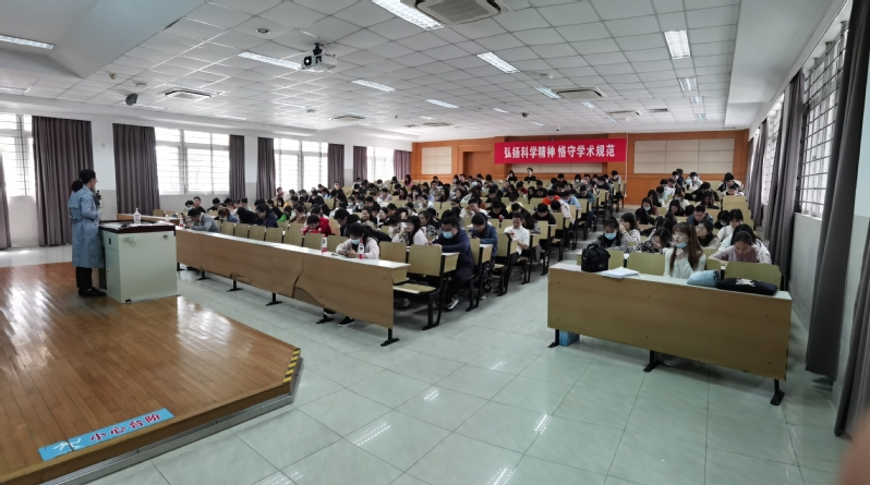 随后,郁惠蕾副院长给毕业生做学术道德与规范教育。她为毕业生们解析了学位论文常见的不端行为,解读相关规定,叮嘱广大毕业生应摆正心态,恪守学术道德,认真撰写毕业论文,并预祝毕业生圆满完成学业。她希望广大生工学子进入社会后,也能做到勤于思考,敢于发声,在工作岗位上务实深耕。