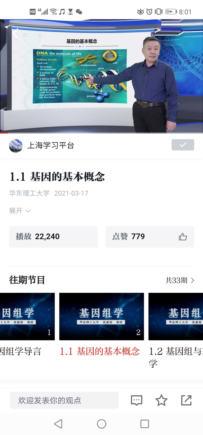 张惠展教授的上海市精品课程《基因组学》在中共中央宣传部“学习强国”平台正式上线,上线短短数日,播放数万次,点赞上千。