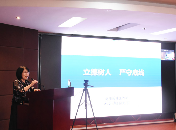 人事处党委教师工作部副部长张雪芹作师德师风建设专题报告,会议由 少妇白洁