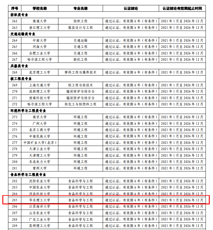 食品科学与工程专业经过向协会提出认证申请、通过认证自评估报告审核,完成专家组进校现场考查、结论审议等多个环节,最终顺利通过本次认证,有效期6年。