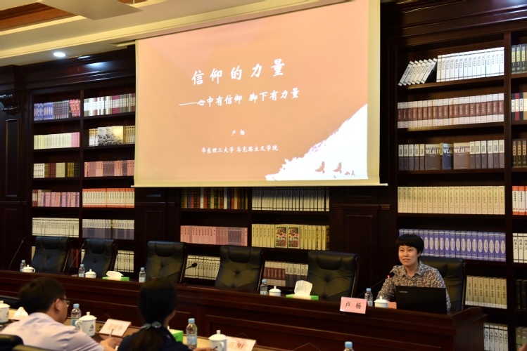 马克思主义学院卢杨副教授给党员们上了一节党史学习教育专题党课——《信仰的力量》。卢杨通过“信仰是什么”这个问题引出了对共产主义信仰的认识,梳理了中国共产党的历程和中国共产党历届党代会的主题,强调了中国共产党在推动中国历史发展作出的伟大贡献。卢杨的报告激励党员们要学史增信,要将党的历史牢记于心,明确自己的责任与担当,心中有信仰,脚下有力量。