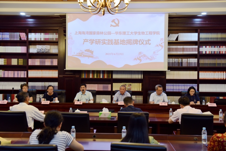 党委副书记左鹏、副院长郁惠蕾、应用生物学系系主任吴海珍、应用生物学系教工党支部书记范建华、生物工程系教工党支部书记高淑红及两个支部教工党员一行二十人来到上海海湾国家森林公园进行联合党建活动暨产学研实践基地揭牌仪式。光明资管公司都市服务运营事业部党委副书记、副总经理刘智伟,光明资管公司都市服务运营事业部党委委员、上海海湾国家森林公园总经理、支部副书记汤暐,上海海湾国家森林公园党支部书记周勤芳,以及公园党员干部、入党积极分子及团员青年约35人出席基地揭牌仪式与联合党建活动,周勤芳主持活动。