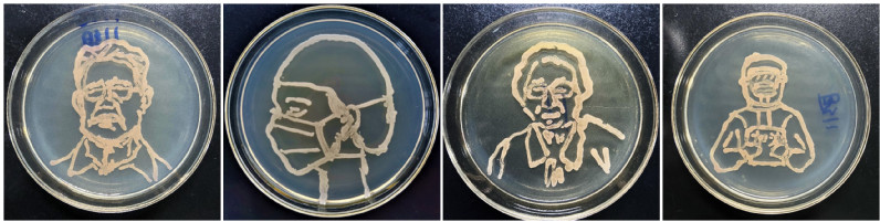 本次微生物竞赛从3月26日开始,历经初赛、复赛和决赛三个阶段。为了迎接中国共产党成立100周年,微生物竞赛组委会的评委老师们从60组上百幅初创草图中筛选出具有家国情怀、构思新颖的15个小组参加了决赛。在决赛阶段,组委会的老师和研究生们在学院实验中心的支持下,对微生物操作零基础的同学们进行手把手的细致指导,最终使构想的草图顺利展现在平板上。一个个小小的平板承载了老师和同学们拳拳的爱党、爱国、爱校的动人情怀。