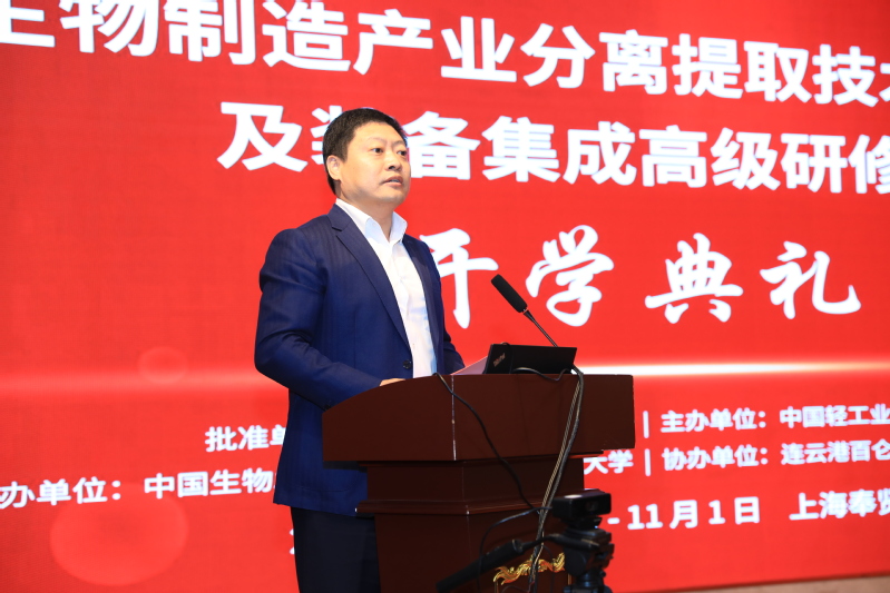 承办的“生物制造产业分离提取技术、工艺及装备集成高级研修班”开学典礼举行。来自全国生物医药与生物发酵产业的59家企业81位企业家、高级技术专家参加本届高研班的学习。中国轻工业联合会副秘书长、中国生物发酵产业协会理事长于学军,副理事长冯志合, 少妇白洁