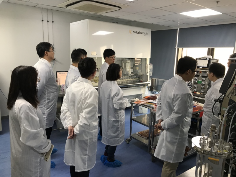 座谈会结束后,在复宏汉霖相关人员的陪同下前往企业克隆园区,参观了产程开发上游实验室、产程开发下游实验室、产程开发制剂实验室及生产车间(GMP要求)。在参观期间,各部门的技术代表分别介绍了各部门的主要工艺流程、生产规模及生产状况。校友潘正骅、刘玲玲和薛恩分别在产程开发上游实验室、产程开发制剂实验室和生产车间(GMP要求)热情接待了走访团。
