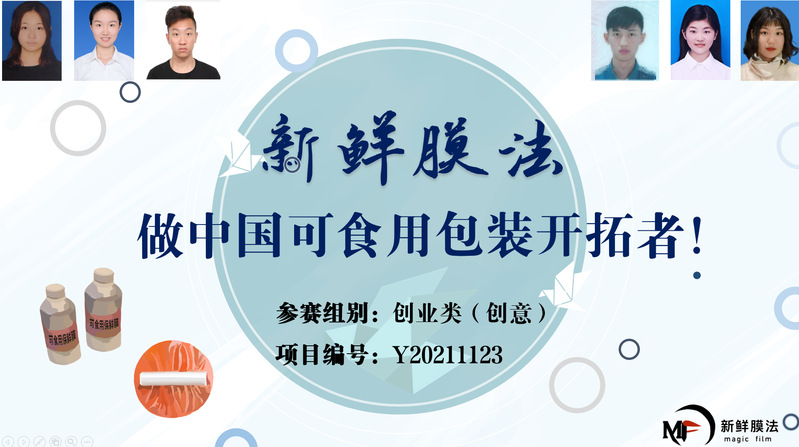 两支本科生团队入围决赛公开答辩,获得一等奖2项:由赵黎明、范建华老师指导的“新型可食用保鲜膜”项目(成员:杨雅淇、王菁、吕奕昂、李行健、刘利娟、沈璐)荣获创业类(创意)一等奖;由范建华、王启要老师指导的“华藻生物——致力于紫球藻精深产品研发的领跑者”项目(成员:郑伊奕、钱宇慧、凌睿婧、马娆、张新煜、何永森)荣获创业类(创意)一等奖。