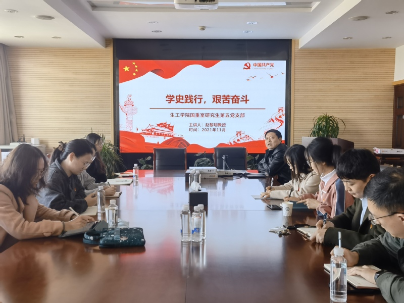 赵黎明教授为国重室研究生第五党支部全体党员和入党积极分子讲授了题为“学史践行,艰苦奋斗”的专题党课。
