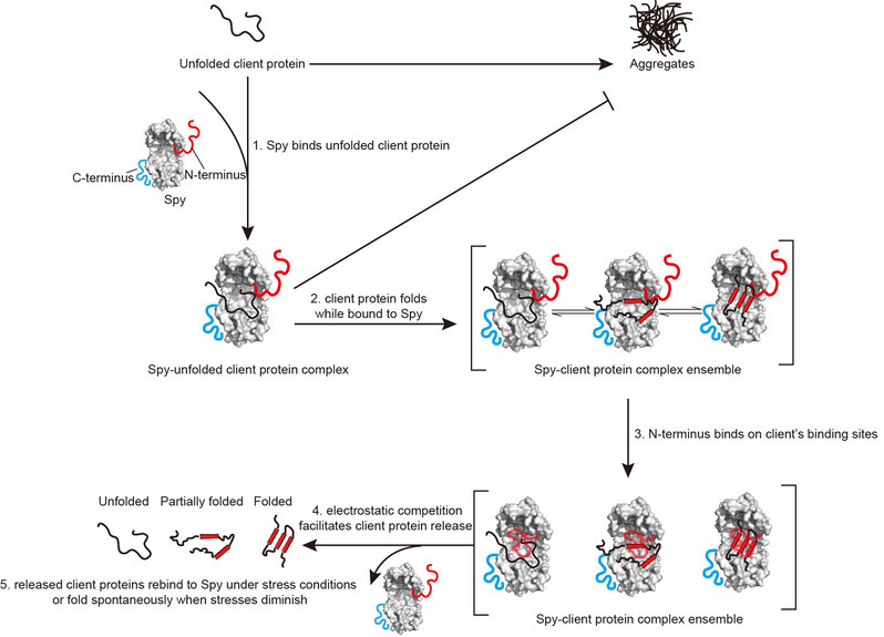 图片说明:分子伴侣Spy的工作机制