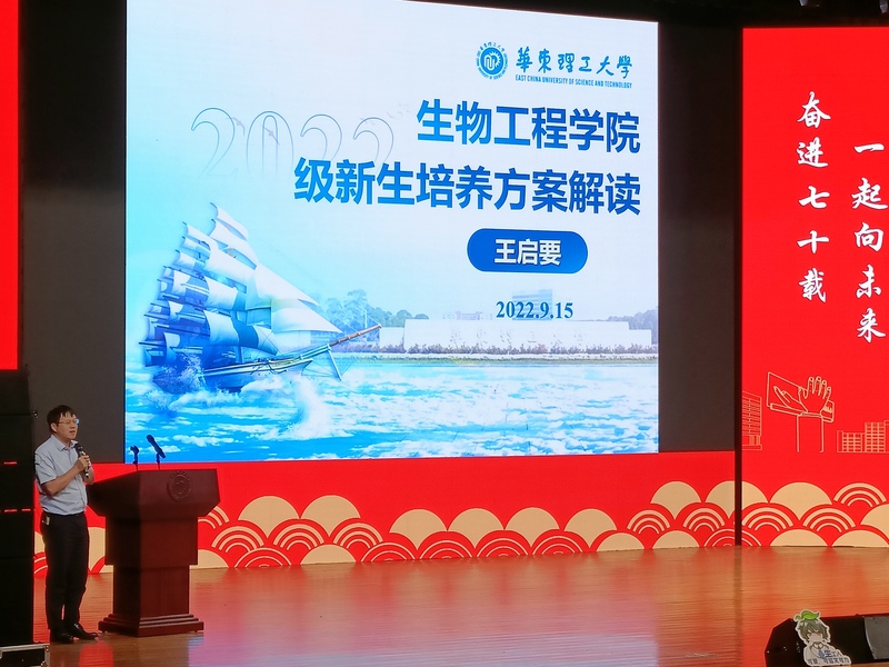 吴辉详细介绍了研究生培养方案的相关制度及要求,今年恰逢华理建校70周年,七秩华理,风华正茂,吴辉勉励生工学子们要牢记党的教诲,胸怀“国之大者”,用热情迎接新的挑战,用智慧创造新的未来,用汗水书写新的辉煌,守护华理荣耀,传承华理精神,以舍我其谁的气魄,奔赴中华民族伟大复兴新征程。最后,吴辉祝愿同学们学业有成、身心健康,接过时代的接力棒,在青春赛道上奋勇争先,砥砺前行,以实际行动迎接党的二十大胜利召开。