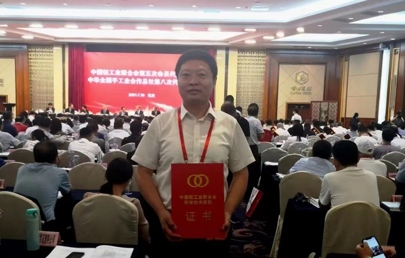 图片说明: 赵黎明获中国轻工业联合会科学技术发明奖一等奖