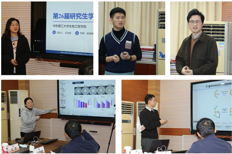 经过前期的论文征集和作品筛选,本届学术论坛报告会共有五名优秀研究生代表入围答辩环节。几位选手分别从乙醇中高效合成异丙醇生物炼制路线、细胞生长和四氢嘧啶的生物合成、DNA纳米机器在miRNA活性检测中的应用、代谢模型重建测试工业补料策略、产酶信号机制入手构建高产纤维素酶的菌株平台等方面展开,研究成果显著。
