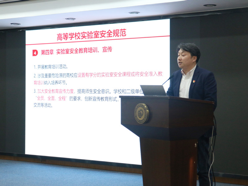 吴辉带领全院教师学习《高等学校实验室安全规范》。吴辉逐条解读了文件主要章节,主要包括实验室安全责任体系,实验室安全管理制度,实验室安全教育培训、宣传,实验室教学、科研活动安全准入制度,实验室安全条件保障,实验室危险化学品安全管理等内容。他结合学校实验室安全专项巡察组的反馈意见,要求各个实验室、课题组安全责任人加强组内安全教育培训,加强警示教育,提高师生安全意识,增强师生防范化解安全风险的能力。