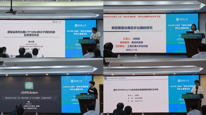 叶邦策教授、庄英萍教授、许建和教授、赵黎明教授、赵玉政教授十位国内知名专家,为大家做精彩的学术报告。报告涉及“数字合成生物学” “Natural Product Synthetic Biology:From Bacteria to Plant” “合成生物学产业发展与智能生物制造” “科学方法论与创新思维” “风口和机遇:合成生物产业的发展趋势”、“从ChatGPT到蛋白质工程通用大模型” “细胞代谢监测示踪与生命健康”“先进分离技术与生物制造”“脂肪酸的生物炼制”和“绿色生物制造让生活更美好”。这些报告引起了师生们浓厚的学术兴趣,现场气氛十分活跃。同学们纷纷表示,本次研究生暑期学校帮助他们实现了与领域专家近距离学术交流与探讨,促使他们更加了解最新的研究动态和学科前沿。