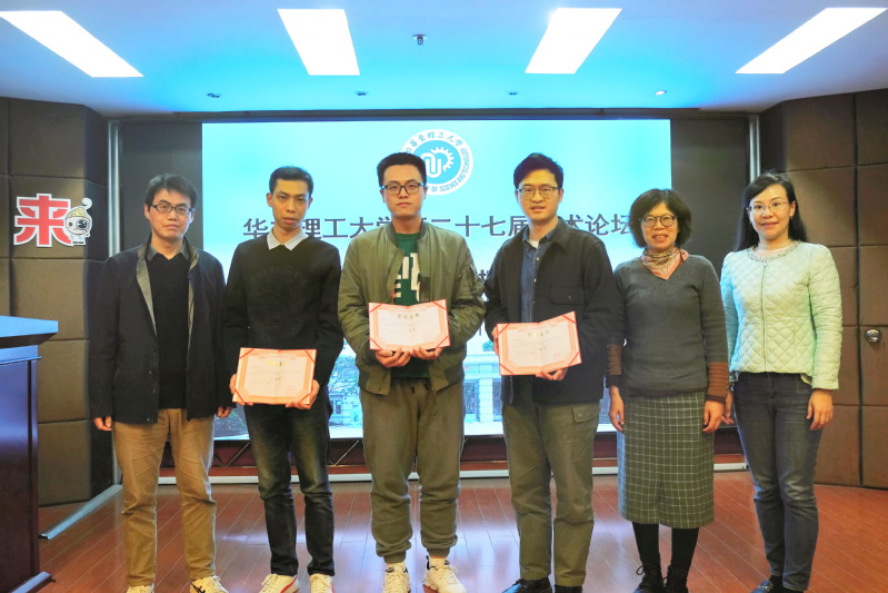 第二十七届研究生学术论坛报告会在徐汇校区举行。本次报告会由学院研究生会学术部施宣任主持,特别邀请高蓓、胡凤仙、张舰三位老师担任嘉宾评委。报告会场座无虚席,学术氛围浓厚。