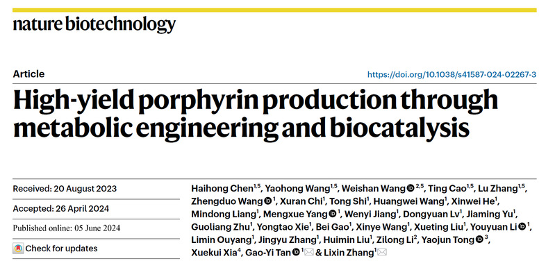 生物反应器工程国家重点实验室张立新/谭高翼团队在血红素及卟啉化合物高效生物制造方向上的突破性进展。研究论文题目为“High-yield porphyrin production through metabolic engineering and biocatalysis”。这项研究标志着 少妇白洁
