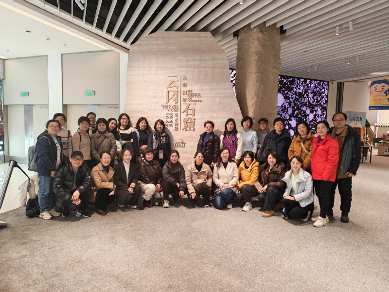 教师们首先参观了云冈石窟艺术特展。展览将北魏石窟艺术瑰宝与现代前沿展览技术深度融合,大家置身于古朴恢弘的艺术殿堂,沉浸式领略了云冈石窟雕刻的雄浑气魄与艺术成就。